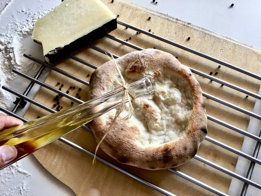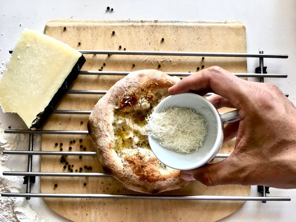 Μία τελείως διαφορετική προσέγγιση Ιταλών chef σε κλασικά πιάτα είναι η μετατροπή του πιάτου ζυμαρικών Cacio e Pepe σε πίτσα. Όπως υποδηλώνει το όνομα του, τα βασικά υλικά είναι το τυρί και το μαύρο πιπέρι, και όταν λέμε τυρί σε μία Ρωμαϊκή μακαρονάδα εννοούμε Peccornino Romano. Είτε το δείτε σαν μια διαφορετική πίτσα, είτε σαν ένα επίπεδο ψωμί με λάδι, τυράκι και πιπέρι, αξίζει να το δοκιμάσετε.
