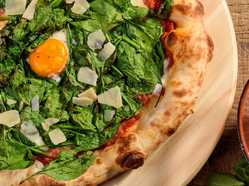 Pizza Fiorentina (Σπανάκι και κρόκος αυγού)