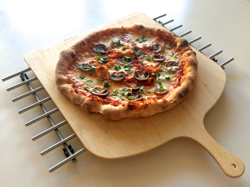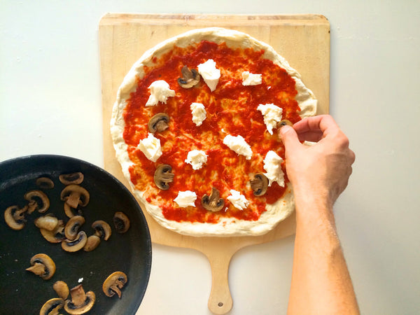 Σκουπίζουμε τα μανιτάρια με χαρτί κουζίνας και τα κόβουμε σε χοντρές φέτες. Βάζουμε λίγο λάδι σε ένα τηγάνι να κάψει, τοποθετούμε αραιά και σε μία στρώση τις φέτες πάνω στο τηγάνι και αλατοπιπερώνουμε. Όταν πάρουν χρώμα από κάτω τις γυρίζουμε μία μία ανάποδα μέχρι να ροδοκοκκινίσει και η άλλη τους πλευρά.