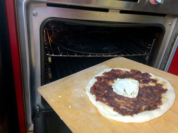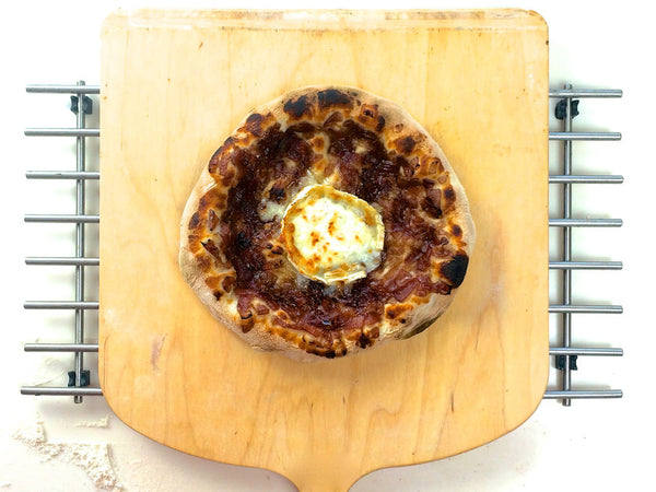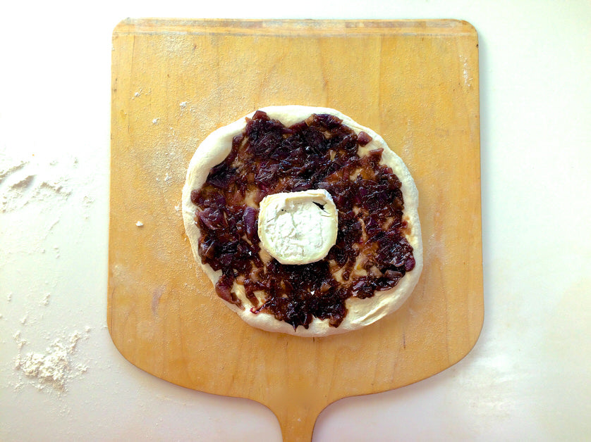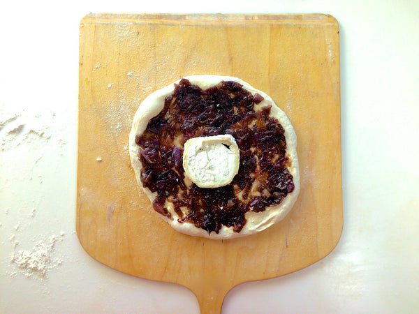 Pizza με καραμελωμένα κρεμμύδια και κατσικίσιο τυρί