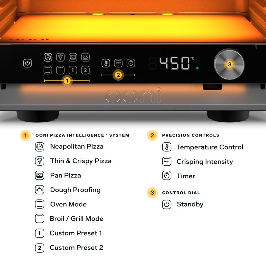 O Ηλεκτρικός Φούρνος Πίτσας Ooni Volt 2 είναι ο ηλεκτρικός φούρνος πίτσας δεύτερης γενιάς της Ooni και έχει κατασκευαστεί με τεχνολογία Pizza Intelligence™, δηλαδή με το πιο προηγμένο σύστημα ελέγχου φούρνου πίτσας της Ooni μέχρι σήμερα. Το Pizza Intelligence™ αποτελεί ένα ευπροσάρμοστο σύστημα μαγειρέματος, που ρυθμίζει αυτόματα τη θερμοκρασία του φούρνου σε πραγματικό χρόνο εξασφαλίζοντας σου ταχύτητα, ακρίβεια και τέλειο ψήσιμο κάθε φορά, όλα με το πάτημα ενός κουμπιού. Χάρη στις 3 άρτια βαθμονομημένες λειτουργίες προεπιλογής ψησίματος πίτσας ο Ηλεκτρικός Φούρνος Πίτσας Ooni Volt 2 σου δίνει τη δυνατότητα να απολαμβάνεις αυθεντική Ναπολιτάνικη πίτσα σε 90 δευτερόλεπτα, πίτσα με λεπτή και τραγανή ζύμη, είτε μια πίτσα ταψιού ψημένη εξίσου αποτελεσματικά .