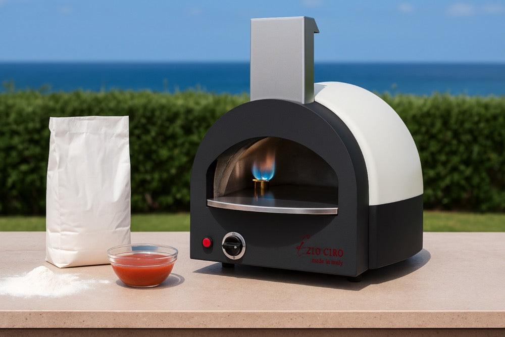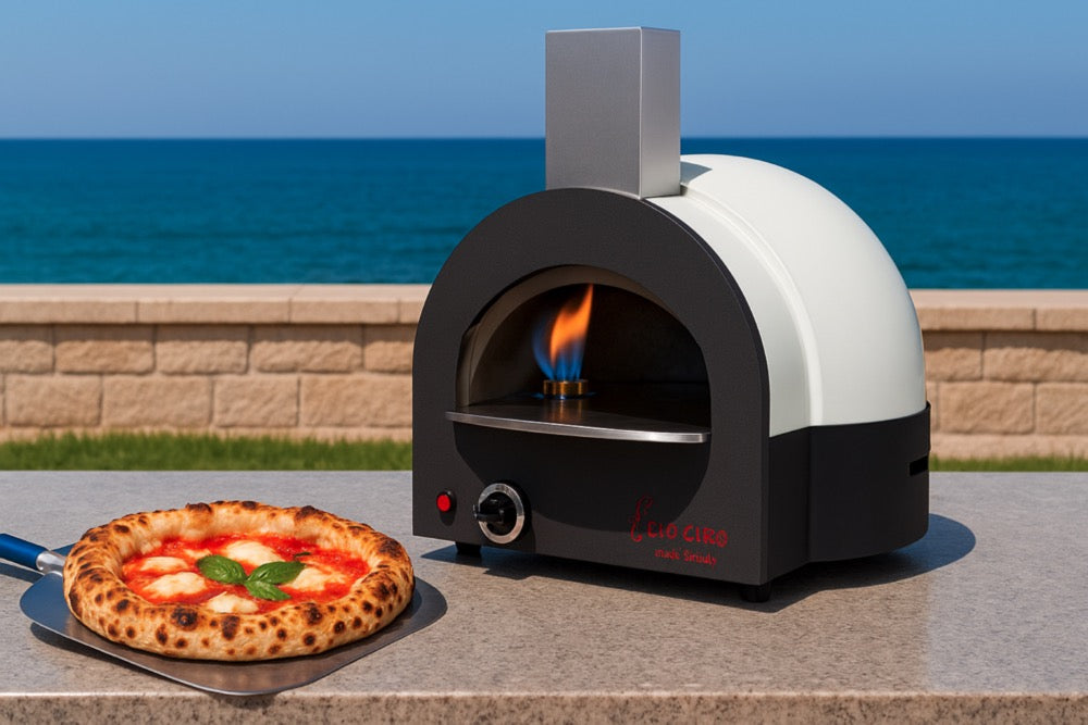 Με εσωτερική διάμετρο 45cm και θερμοκρασία έως 450°C, ψήνει εύκολα, τέλεια ναπολιτάνικη πίτσα καψαλισμένη από τη φλόγα με ένοτα μαύρα στίγματα (λεοπαρδάρισμα).