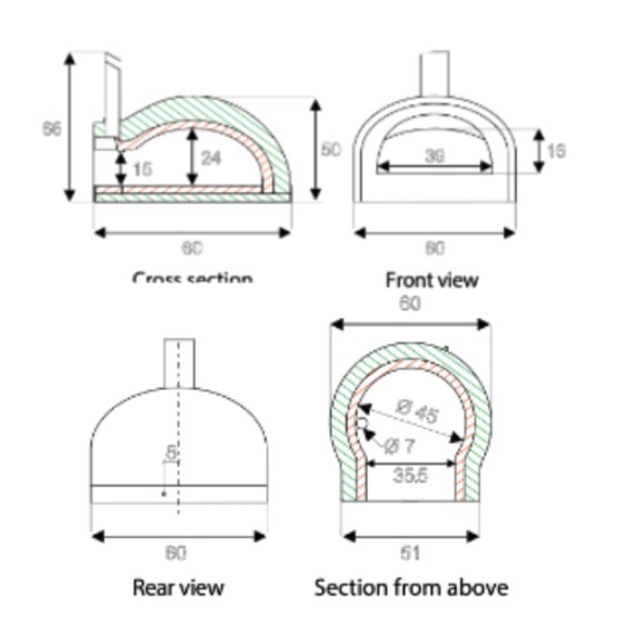 Εξωτερικές διαστάσεις: | 60x60x50cm (66 με την καμινάδα) |